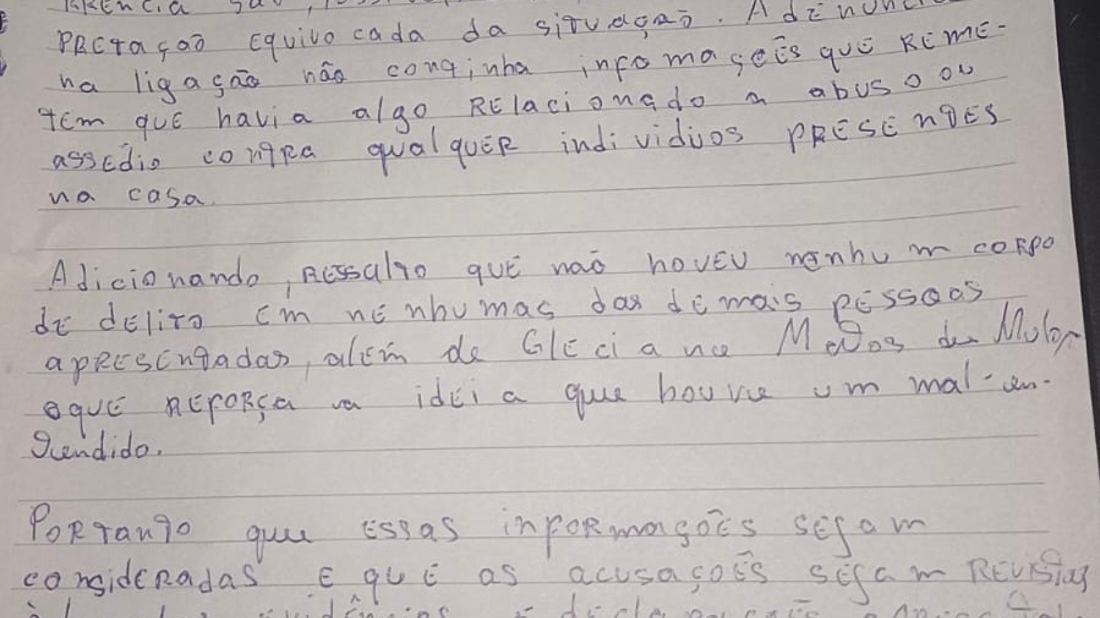 No entanto, em manifestação posterior, feita de forma voluntária e por escrito, a jovem esclareceu que não houve qualquer tipo de abuso ou assédio sexual contra ela. Segundo o relato, a declaração inicial teria sido motivada por raiva, desespero e medo, após presenciar agressões sofridas por sua mãe dentro de casa.