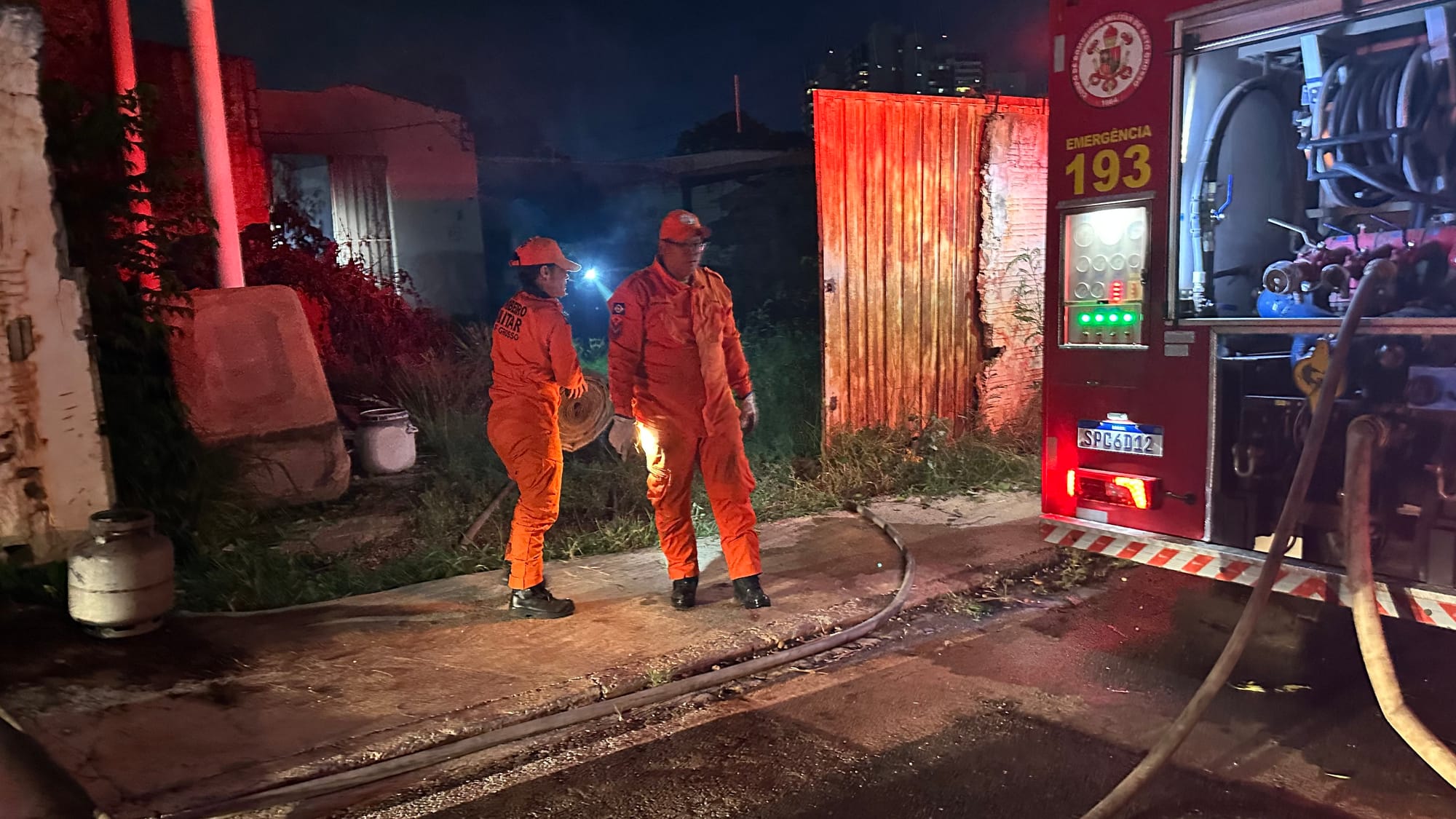 De acordo com informações iniciais, quando a equipe do Corpo de Bombeiros chegou ao local, vizinhos já tentavam conter o fogo por conta própria, utilizando baldes e mangueiras de jardim para jogar água na estrutura e evitar que o incêndio se alastrasse para as residências vizinhas.