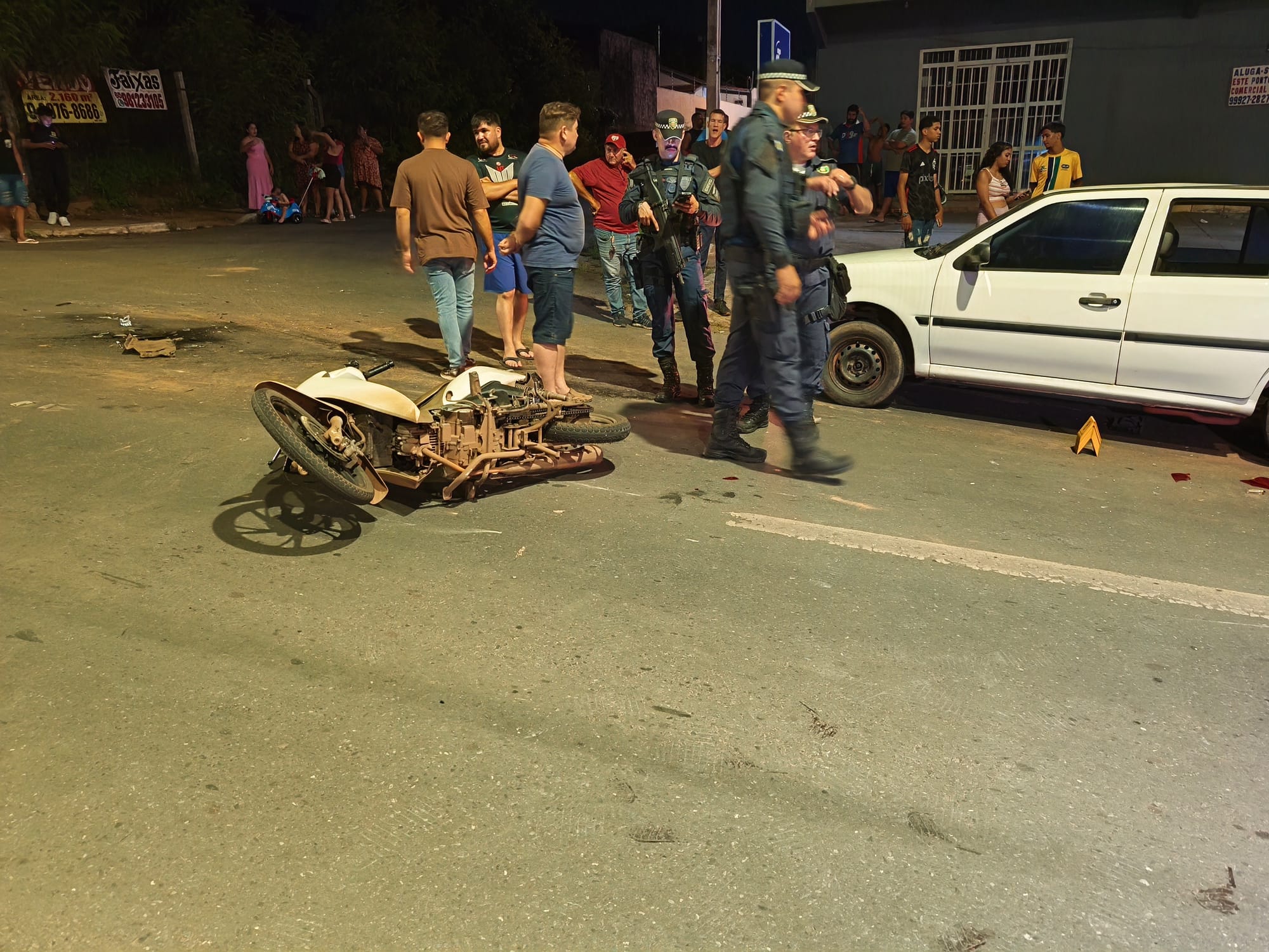 De acordo com as informações, um primeiro acidente envolvendo um carro e uma motocicleta aconteceu no trecho. Após a colisão inicial, os dois envolvidos saíram da pista.