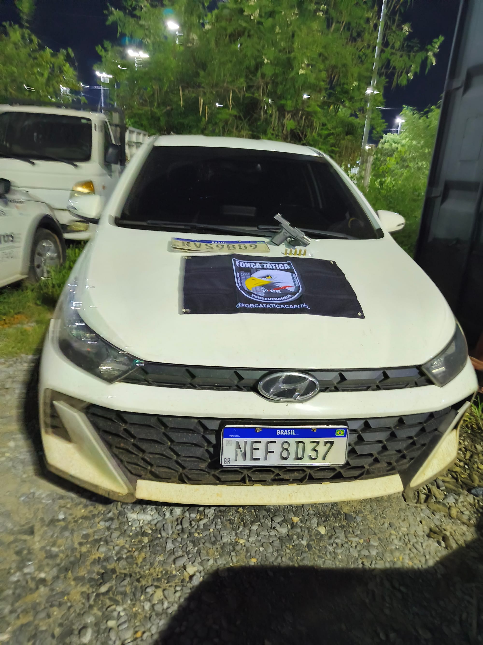 No momento da abordagem, o homem estava em um veículo Hyundai HB20 locado, que utilizava placas frias. Com ele, os policiais também localizaram a arma de fogo usada no assalto, fortalecendo as provas contra o investigado.