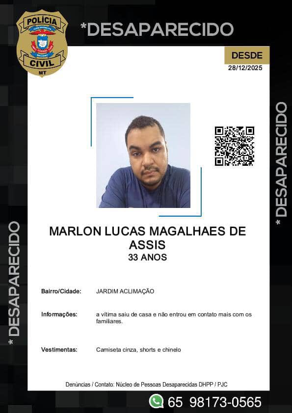 O caso foi registrado e está sendo acompanhado pelo Núcleo de Pessoas Desaparecidas da DHPP, que segue com as investigações para tentar localizar o paradeiro de Marlon.
