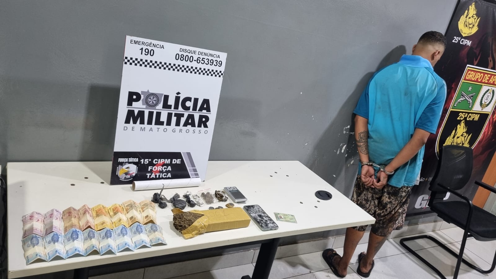 Uma ação da Força Tática do 2º Comando Regional resultou na prisão de um suspeito por tráfico ilícito de drogas na noite desta terça-feira (20), no bairro Don Diego, em Várzea Grande.