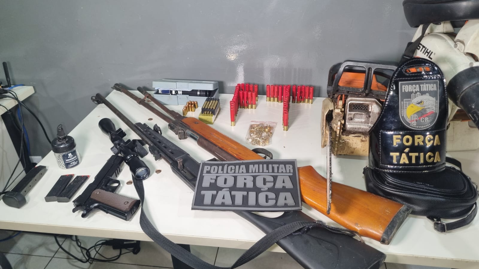 O idoso foi rendido, amarrado e teve a cabeça coberta com um pano. Em seguida, os suspeitos passaram a revirar toda a residência em busca de objetos de valor. Durante a ação criminosa, foram levados diversos pertences da vítima, entre eles espingardas, armas de airsoft, brinquedos, uma motosserra e outros objetos da casa.