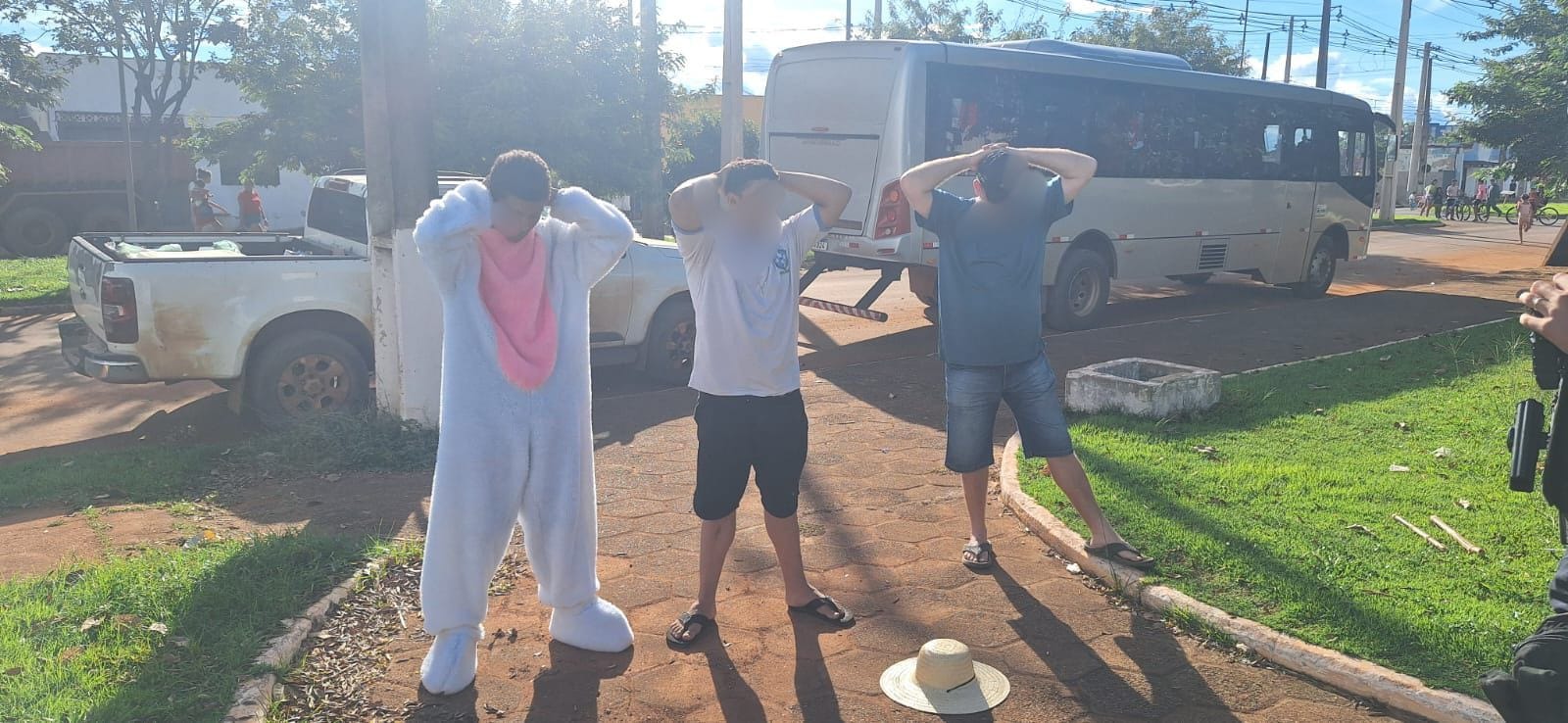 Durante o patrulhamento intensificado, os policiais localizaram o grupo em uma praça no bairro Boa Esperança. No local, várias crianças recebiam os produtos enquanto os envolvidos atuavam de forma organizada, com divisão de funções e até uso de fantasias para chamar a atenção do público infantil.