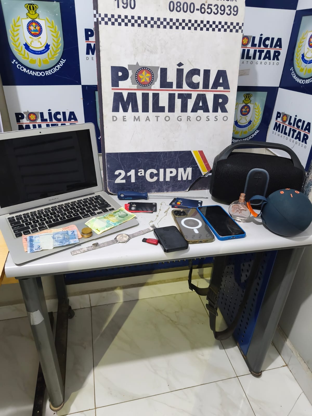 Na noite desta terça-feira, uma ação da Polícia Militar resultou em perseguição, fuga de suspeitos e apreensão de diversos objetos possivelmente furtados, em Cuiabá. A ocorrência foi atendida por uma guarnição da da 21ª Companhia Independente da PM.