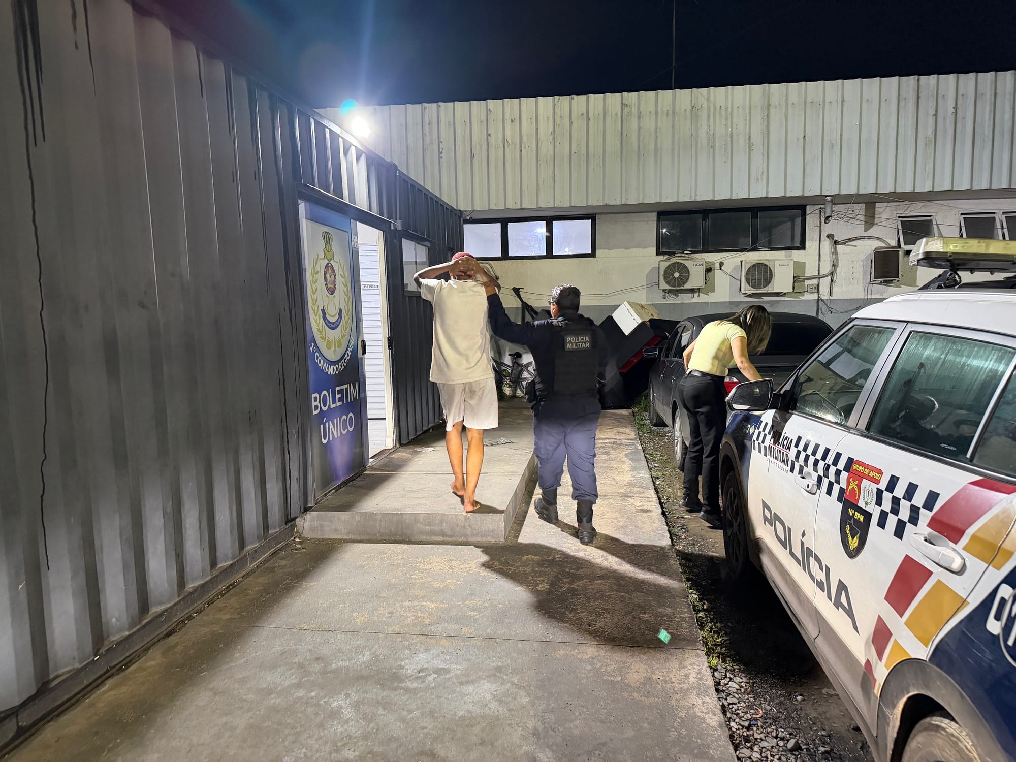 Pouco tempo depois, os policiais localizaram o veículo já nas proximidades do bairro Verdão, em uma comunidade conhecida como UBATAM, área próxima ao local do crime. Um dos suspeitos foi flagrado entrando em uma kitnet para esconder o carro.