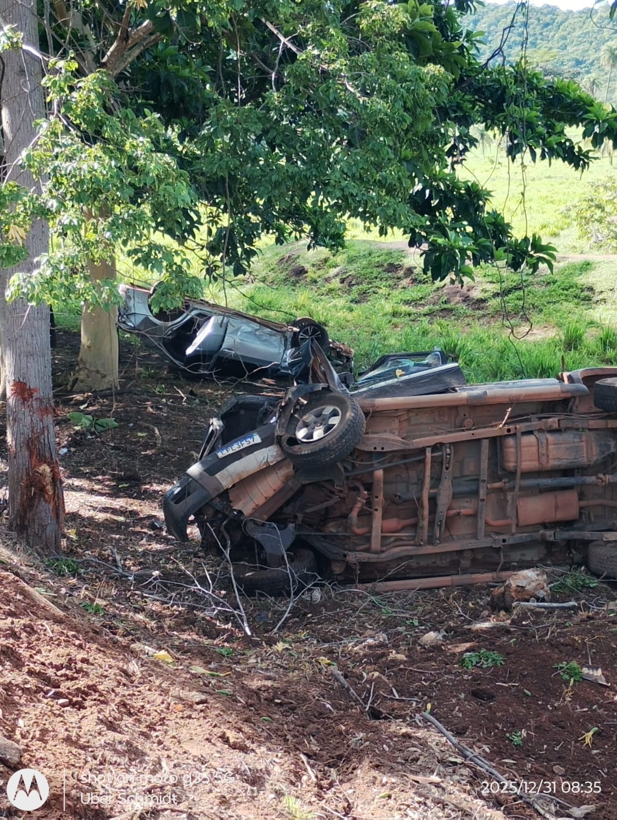 Após o impacto inicial, o Corolla atingiu o Cobalt e, na sequência, uma S10 que vinha logo atrás. Com a força da batida, os condutores do Corolla e da S10 perderam o controle da direção, saíram da pista e capotaram.